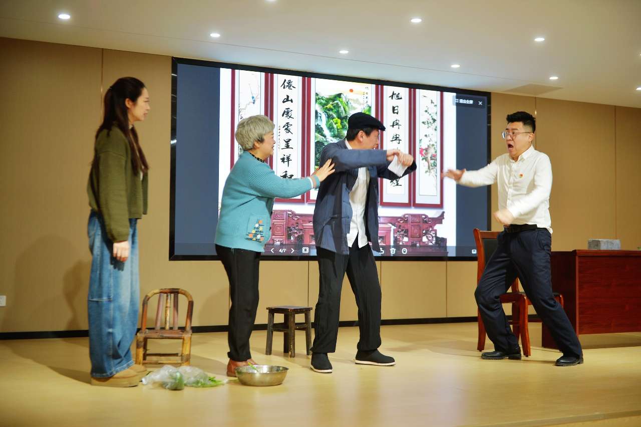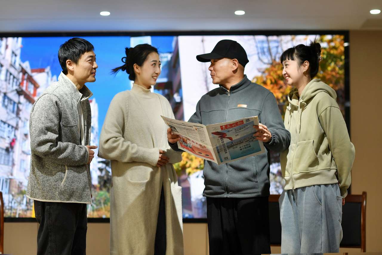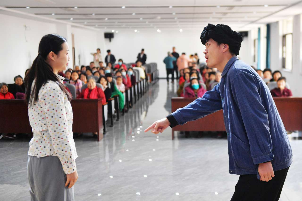 广东配资公司演员在表演前进行化妆准备